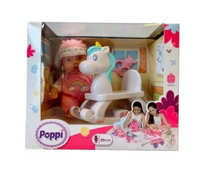28074 ** Poppi – Bebe Con Caballito Mecedor 20 Cm