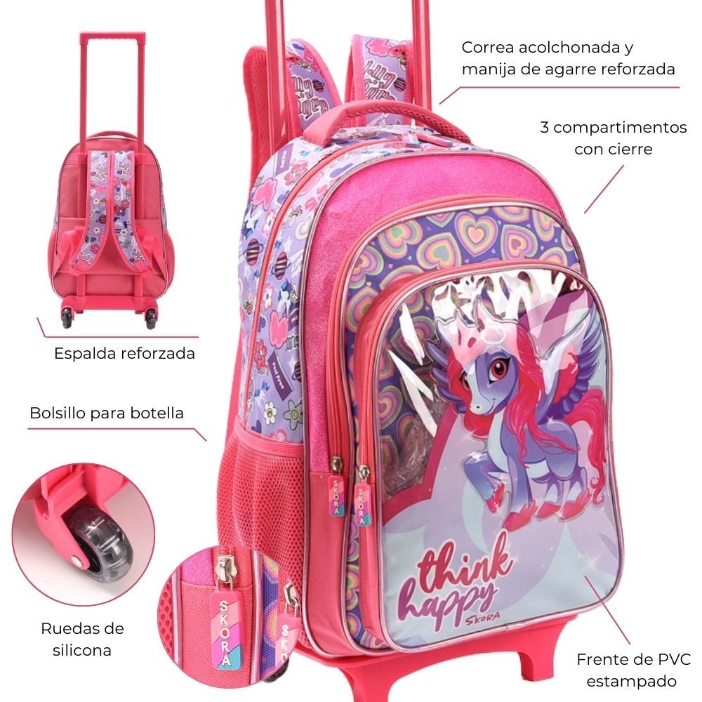 Mochila Carro Think Happy Shine Unicornio Pvc C/glitter 32x45x15cm 18″