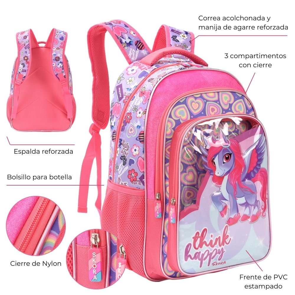 Mochila Think Happy Shine Estampa Unicornio Pvc Con Glitter 32x45x15cm 18″